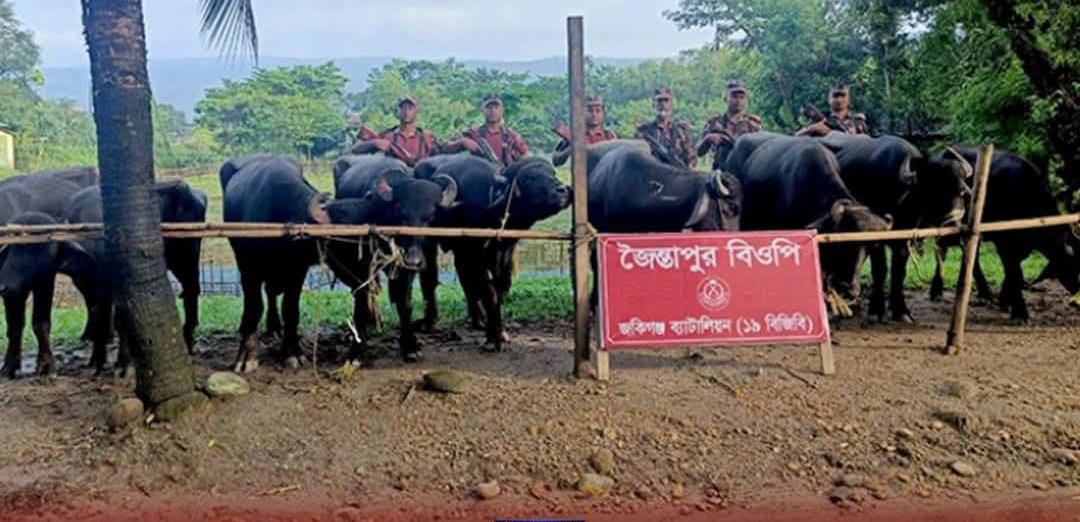 জকিগঞ্জ ব্যাটালিয়ন (১৯ বিজিবি)-এর একটি বিশেষ অভিযানে ১৮ লক্ষ টাকার ভারতীয় ১০টি মহিষ আটক করা হয়েছে।