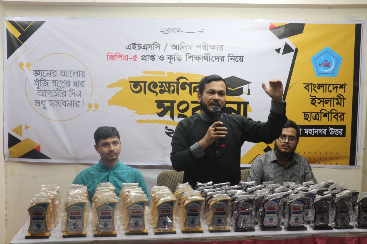 ২০২৪ সালে এইচএসসি, আলিম ও সমমান পরীক্ষায় জিপিএ-৫ প্রাপ্ত ও কৃতি শিক্ষার্থীদের তাৎক্ষণিক সংবর্ধনা প্রদান করে বাংলাদেশ ইসলামী ছাত্রশিবির ঢাকা